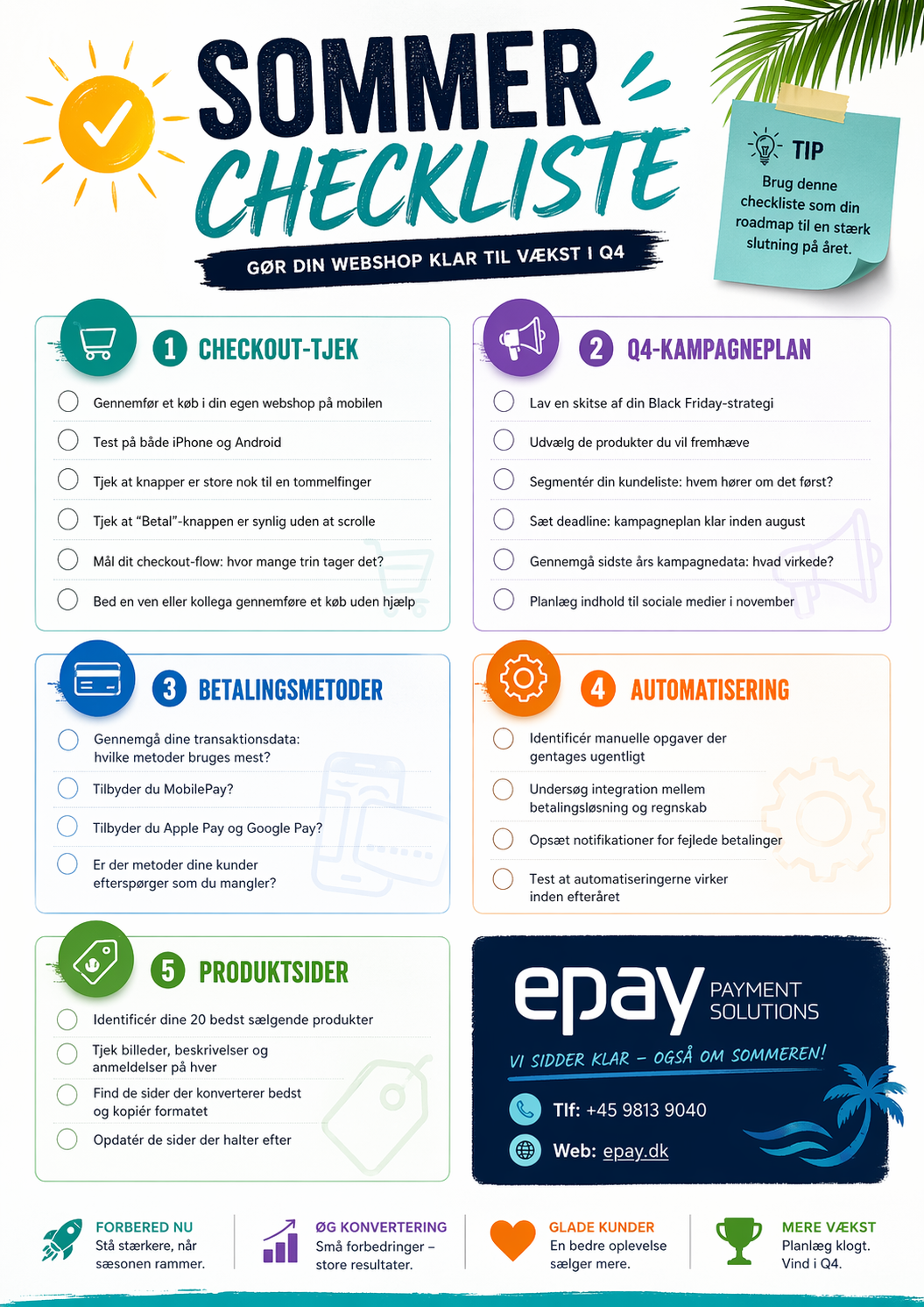 De webshops der vokser, bruger sommeren som forberedelse. De fikser det der bremser konverteringen, rydder op og planlægger. Og når trafikken vender tilbage i september, er de klar.
